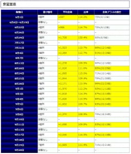 差枚プラスの割合 66%(10/15台)