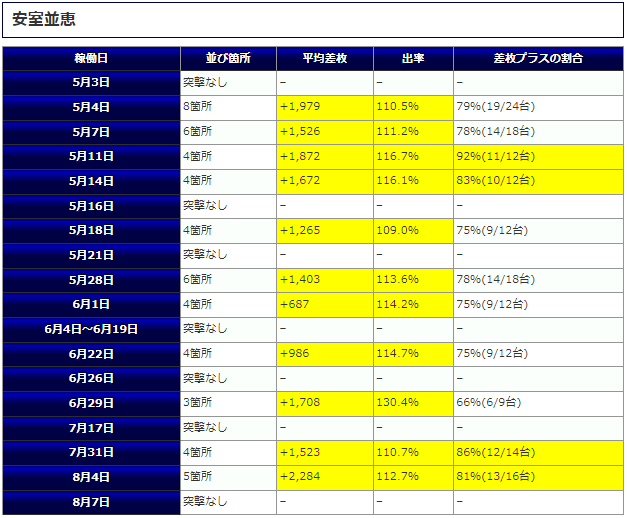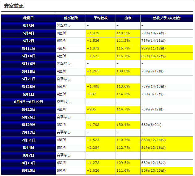 今回の開催ではスロット・パチンコともに優秀な内容であったと思います。まさに『旧イベ』らしい結果と言える盛り上がりとなりましたね。好結果を量産している同店ならば今後も期待できるのは明白でしょう。引き続き要注目です。