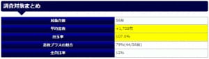 最終的な結果としては平均差枚+1,278枚、平均出率109.5%、勝率66%と中々な結果となりました。今回は「沖スロ」+「6.5号機」といった構成となったようですね。