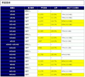上記の計12機種での開催となりました。今回は人気度の高い「エヴァ未来」が幅広く対象となりました。最終的な結果としては平均差玉+11,707発、合計差玉+409,740発、勝率69%(24/35台)といった素晴らしい結果となりました。