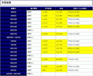 勝率も半数以上で平均差玉が高い事から総合的な判断で見てみても当日の盤面の状況はかなり好環境であったと推測するには十分な結果となったと思います。期待値ガン積みできる有意義な1日となったのは間違いなさそうですね。