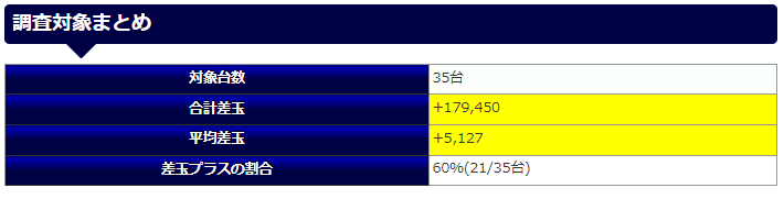 | 台あたりの平均差玉 | -605玉 |