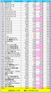 8箇所用意された「並び」全体で平均差枚+1,394枚、出率 112.2%、勝率66%と全体の回転数が低めな分、出率は上がりましたがマイナス台も多く勝率66%は、仕掛けの理論値としては良い結果とも言い辛く。