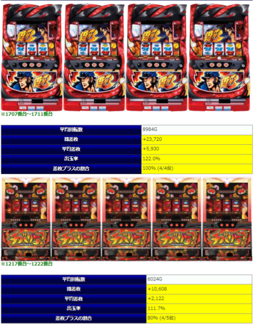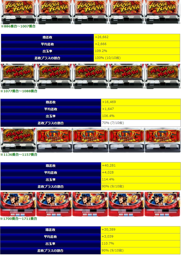並び系も、ほぼ全⑥だたのではと思えるほどの好結果を全箇所で安定的に魅せた今回の結果は、全体の用意のボリュームが総設置台数比で少な目である点は否めないのは変わらないものの、それをして☆⑤と評価して良い結果になったと思えます