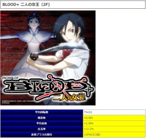 全台系では、定番機種のひとつ【BLOOD+ 二人の女王】が全⑥で用意され、平均回転数7542Gから平均差枚+2,994・出率113.2%・勝率100%と今回は全⑥らしいインパクトある結果となっています。