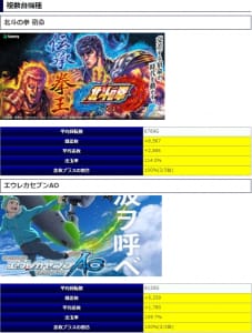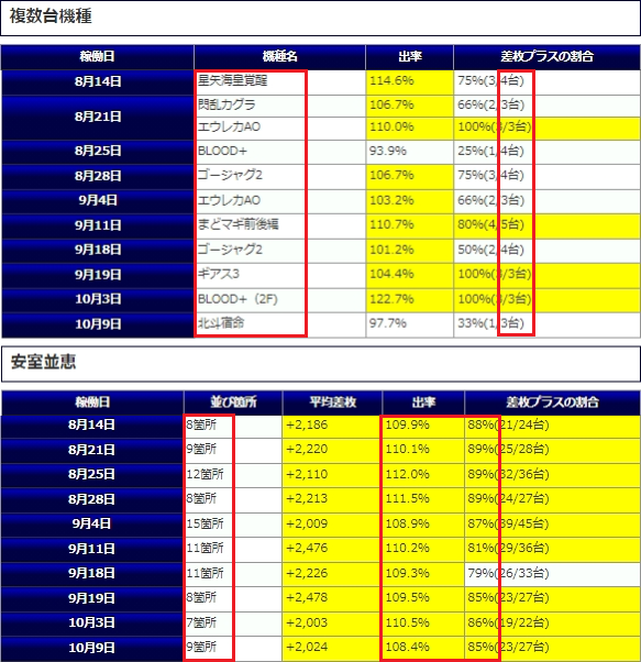 10月2~3日でも「北斗修羅」「ゴージャグ2」「BLOOD+」とそれまでの傾向と変わらない様子ですので、上記の高頻度で対象となる機種には引き続き注目です。