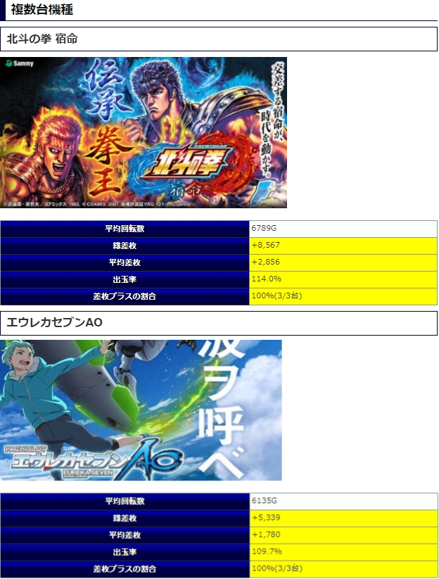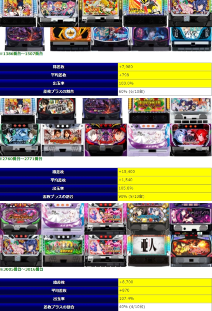6号機から「鬼浜狂闘」で+7,217枚、「バジ絆2」で+6,690枚、「うしおととら」で+5,702枚、「チバリヨ」で+5,337枚、「バイオ7」で+3,436枚、と5号機と遜色無い強い結果が多く出現し、5号機からも勿論「イクリプス」から+5,330枚、「忍魂 ~暁ノ章~」から+4,866枚と存在感を示す台が現れている。