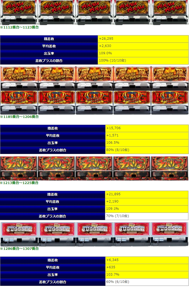 各列に1台ずつの【設定⑥】と、列の1/3が【設定⑥】となる公約でしたが、「列12で7台」、その他の列で各1台としっかり公約に沿った投入となっていた様です