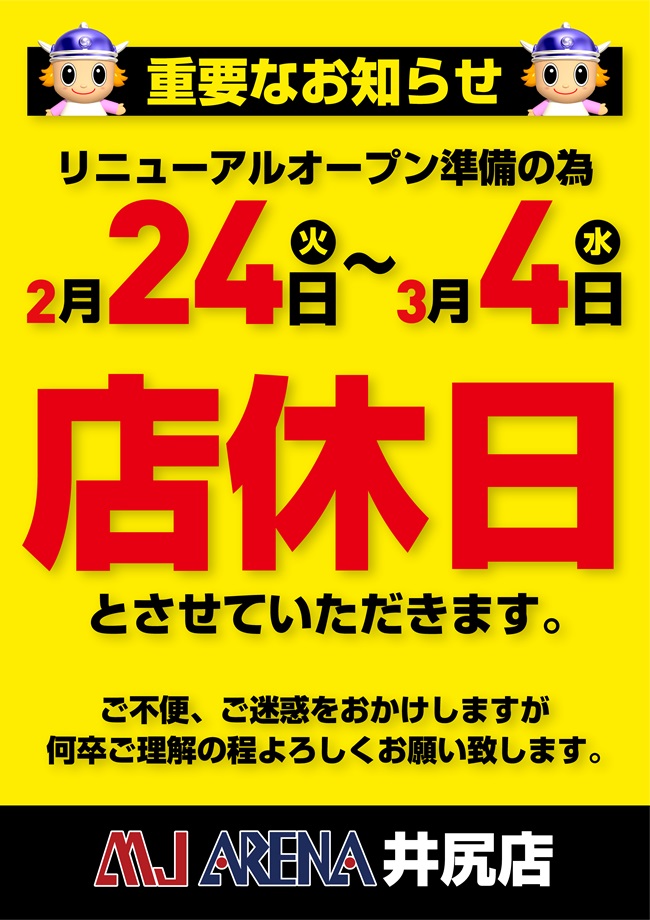1. 2/24~3/4までリニューアルのためお休み見たいです。