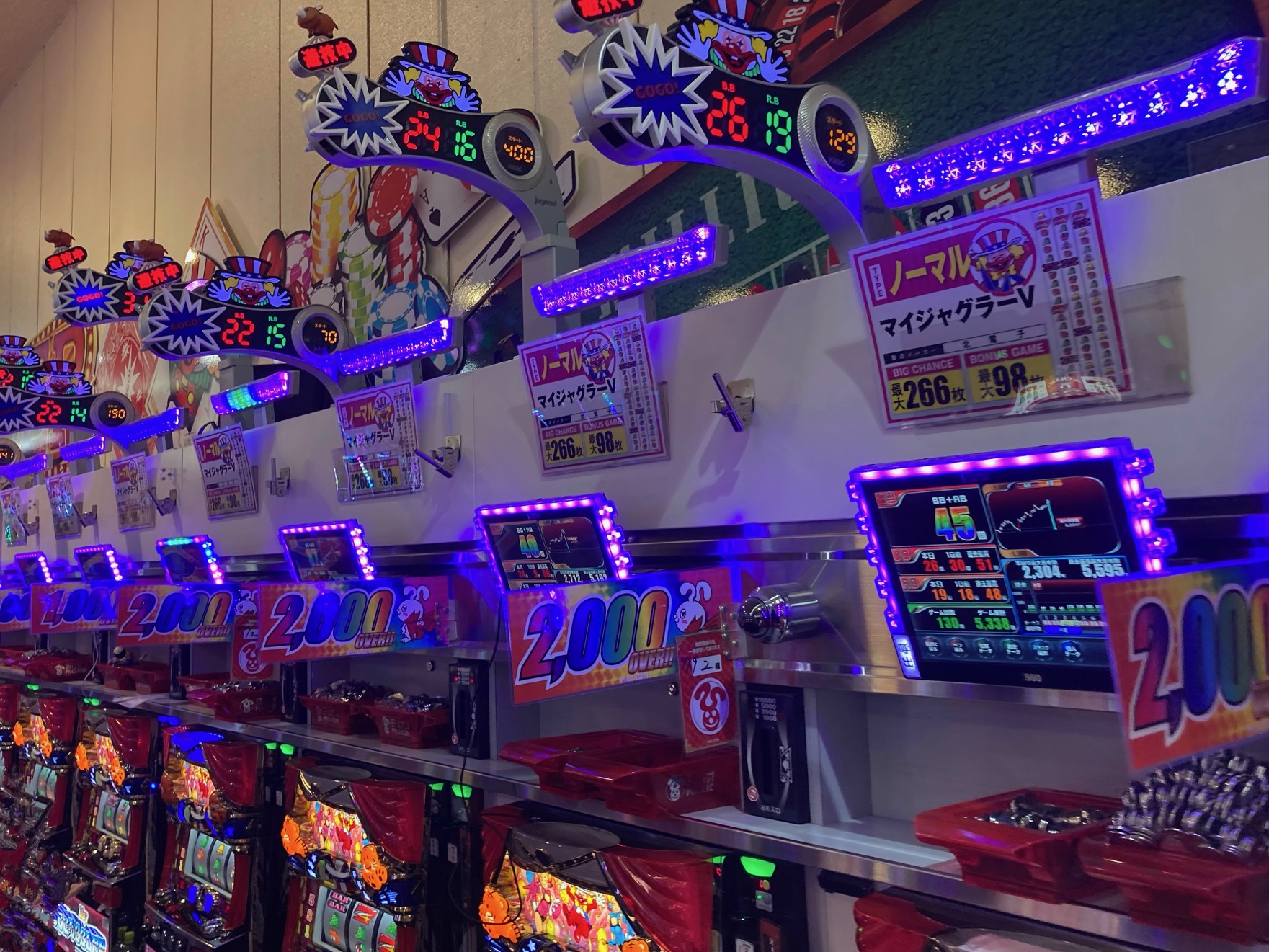 ジャグラーシリーズに仕掛けられていた一台置きの10台並びは全台プラス差枚と非常に優秀でしたし、全台系のからくりサーカスは爆発台が多数あり、高設定の圧倒的な出玉性能を披露してくれました。