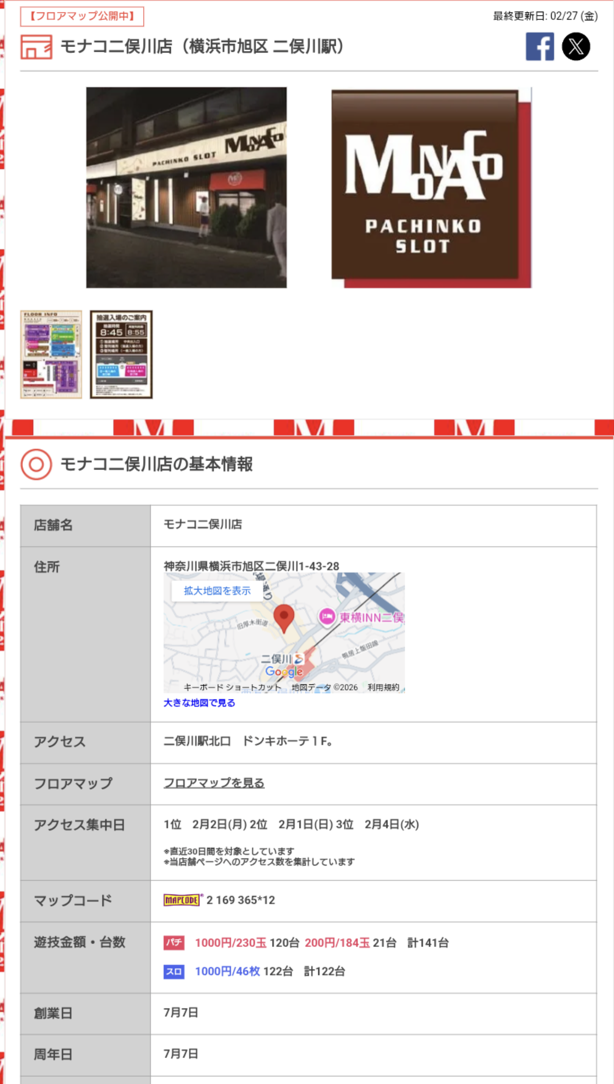 | 台数 | パチンコ141台/スロット122台 |