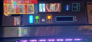 景品カウンターから右側を直進して円筒形島(11月25日現在)低貸しコーナーの手前を左側を直進して突き当たり出入口を出て左手にあり