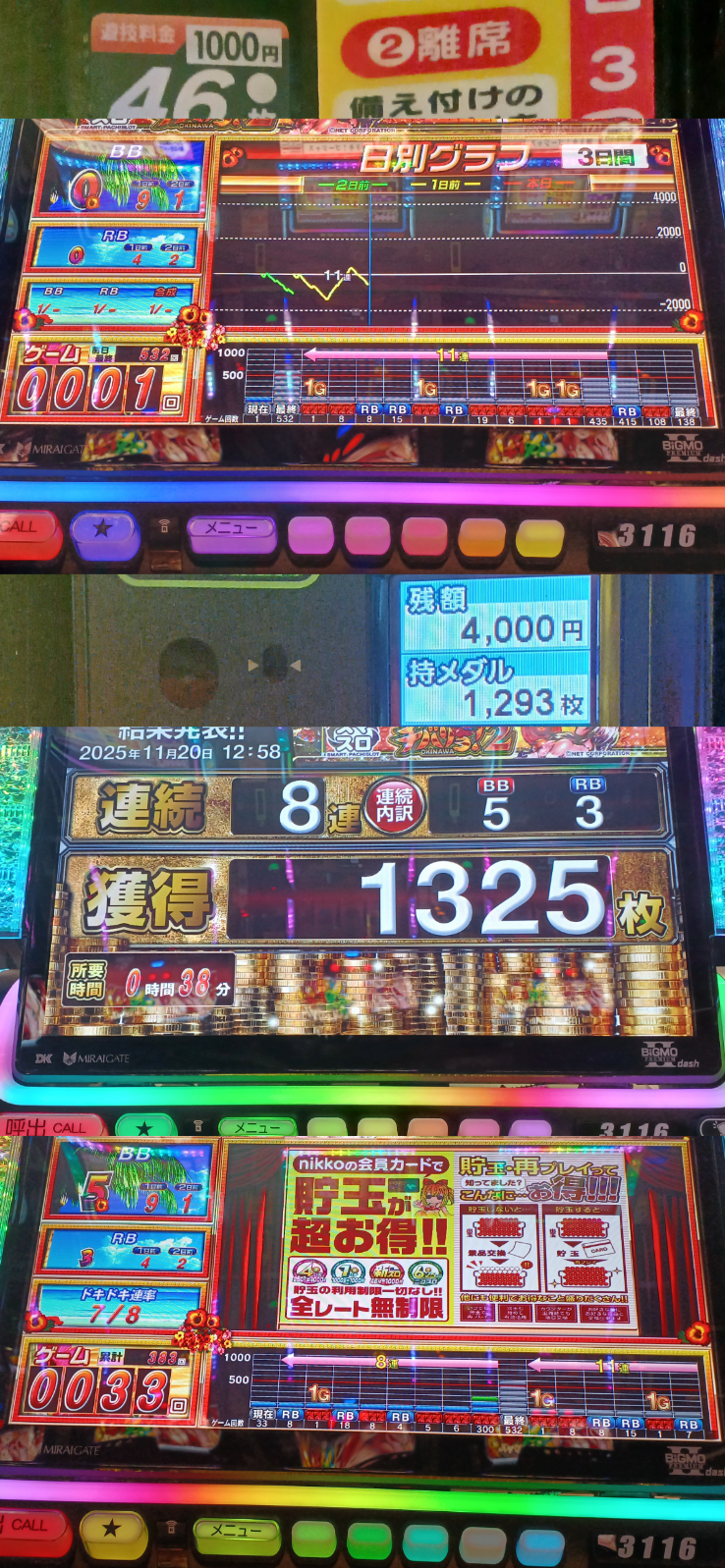 うち1台が2000枚overの出玉記録を出していたことを確認