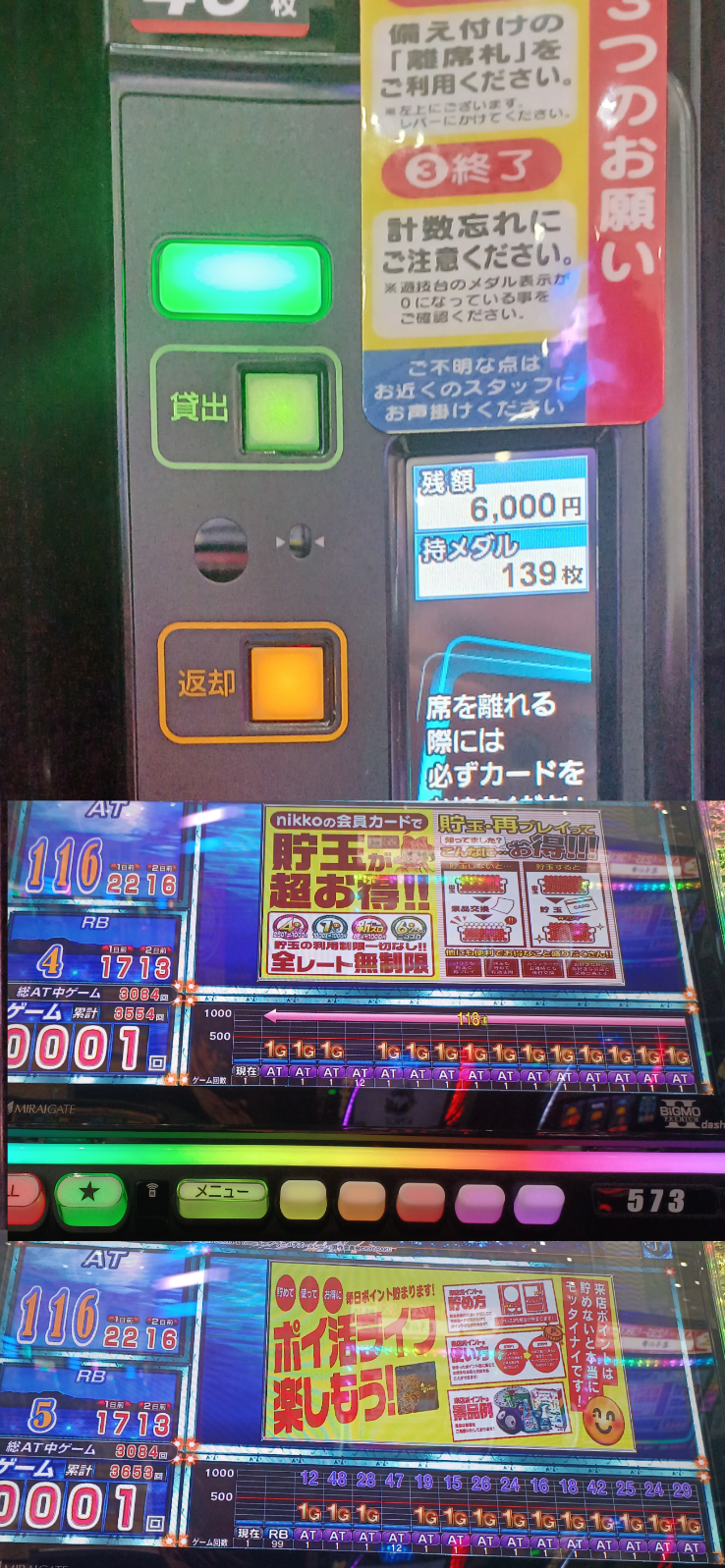 にしても20スロの一部、6.25スロの台の左横にある白い小型モニターはイヤホン接続してテレビ見れる機能があるとのこと。いつか試したい。