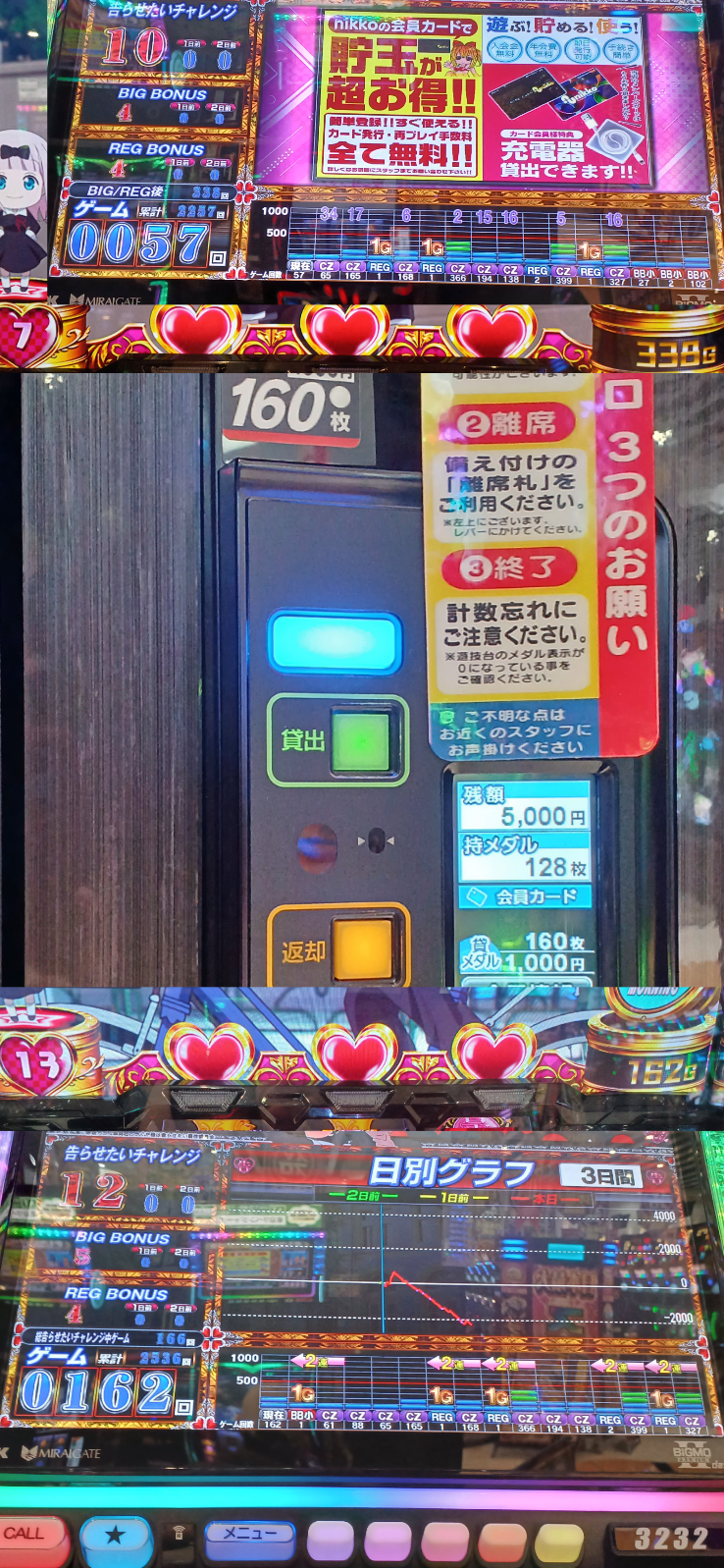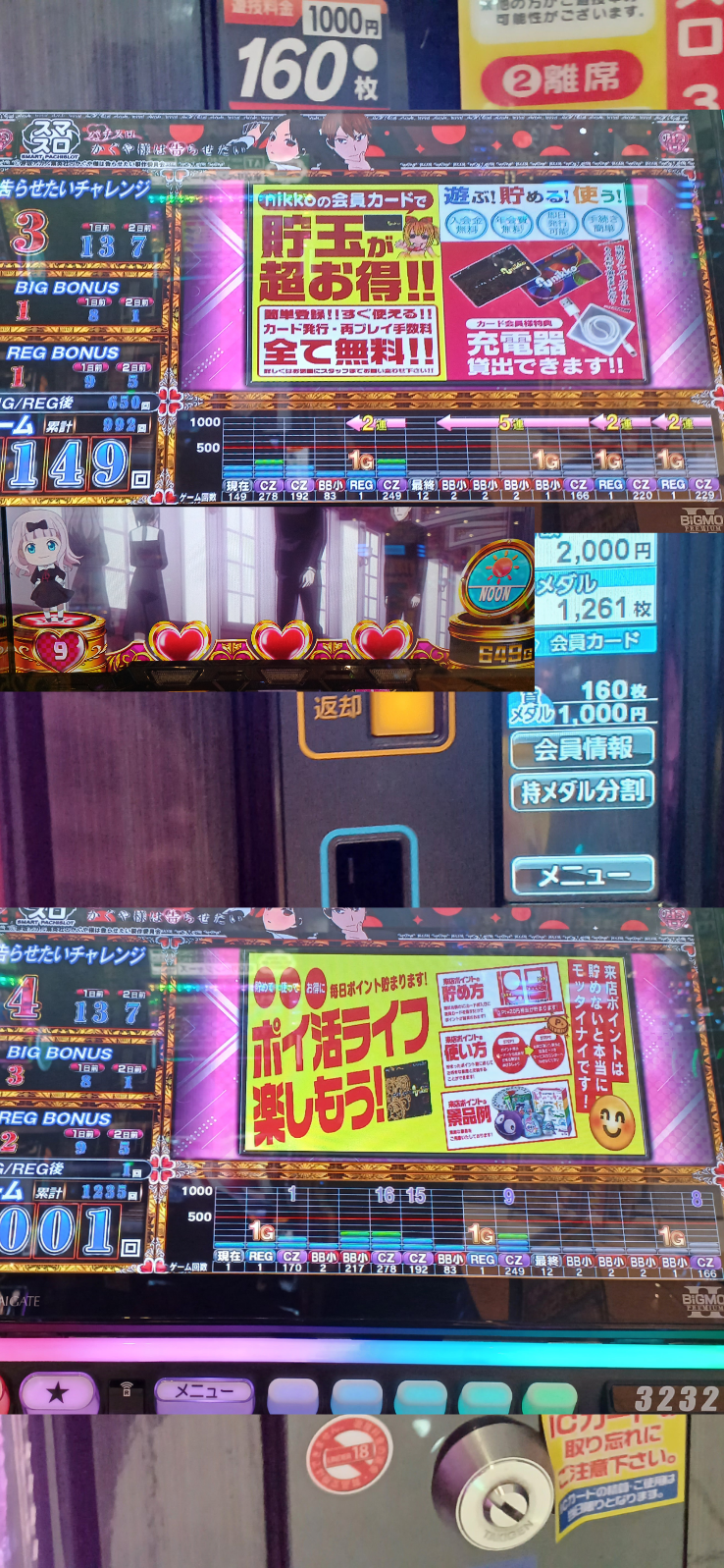 かぐや様を設定狙いし投資26K、天井間際REGでゾーン見てヤメの回収40枚