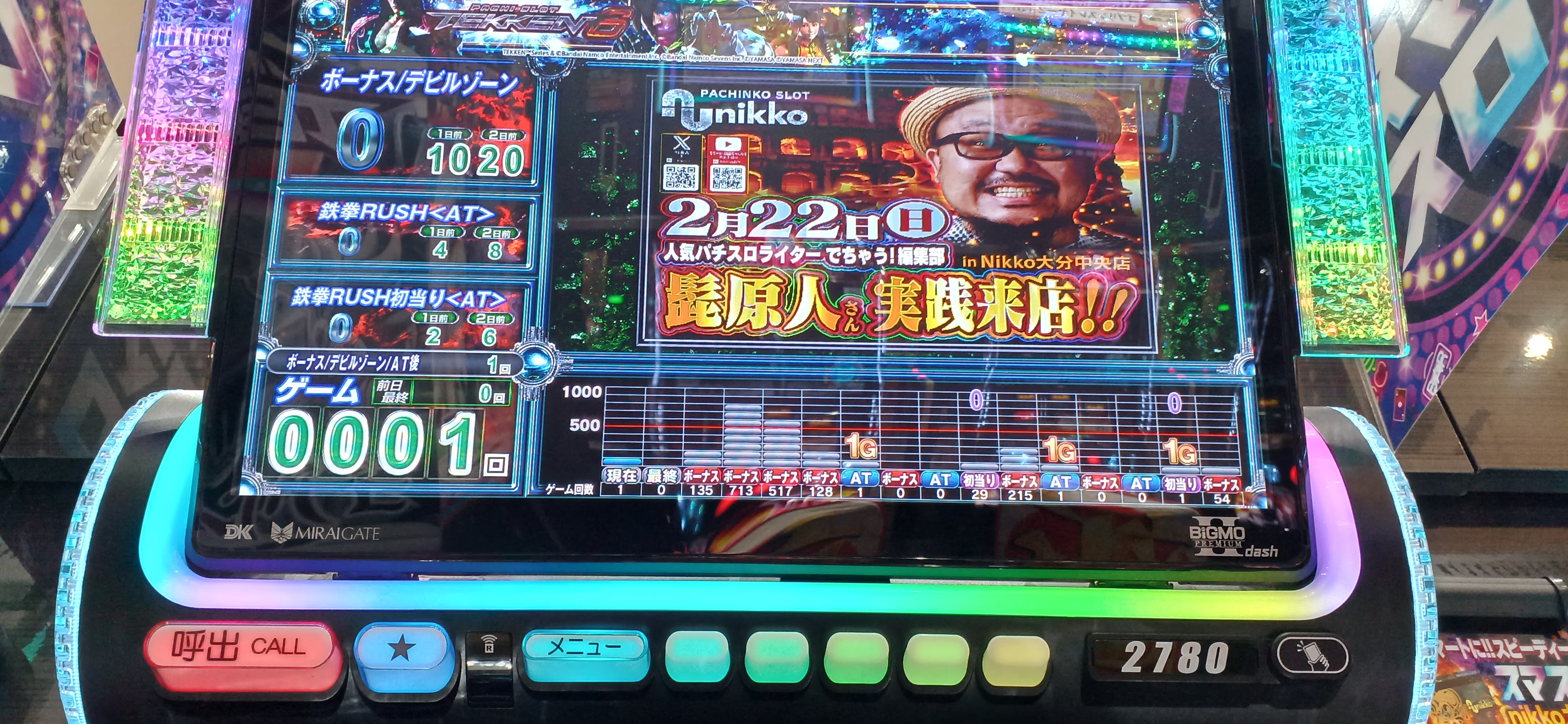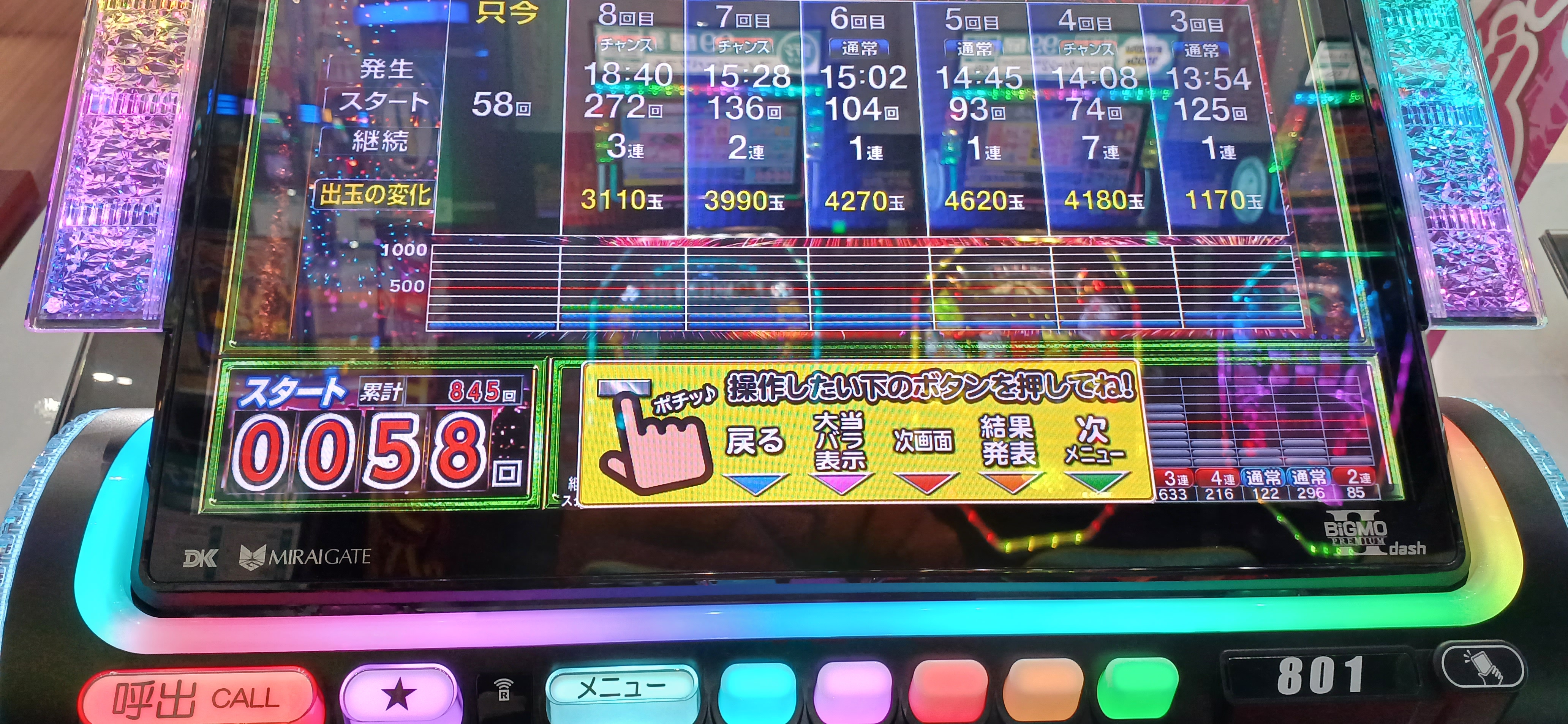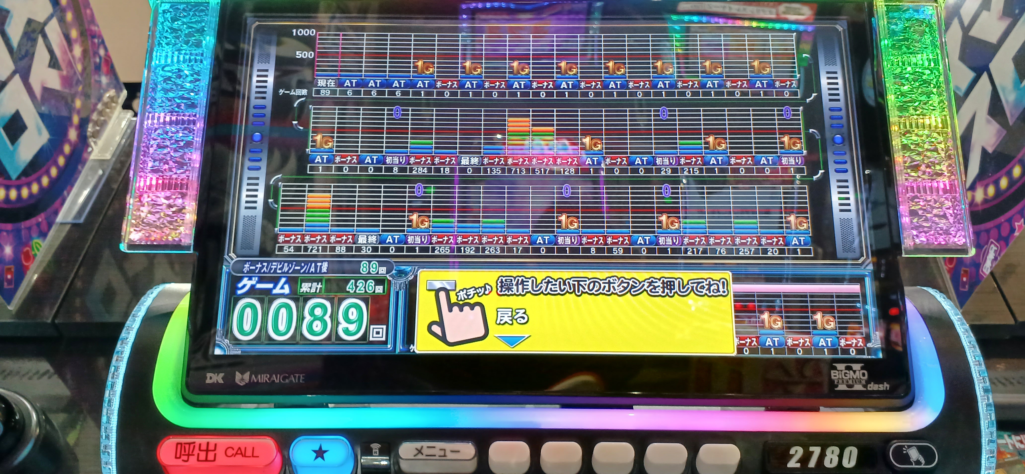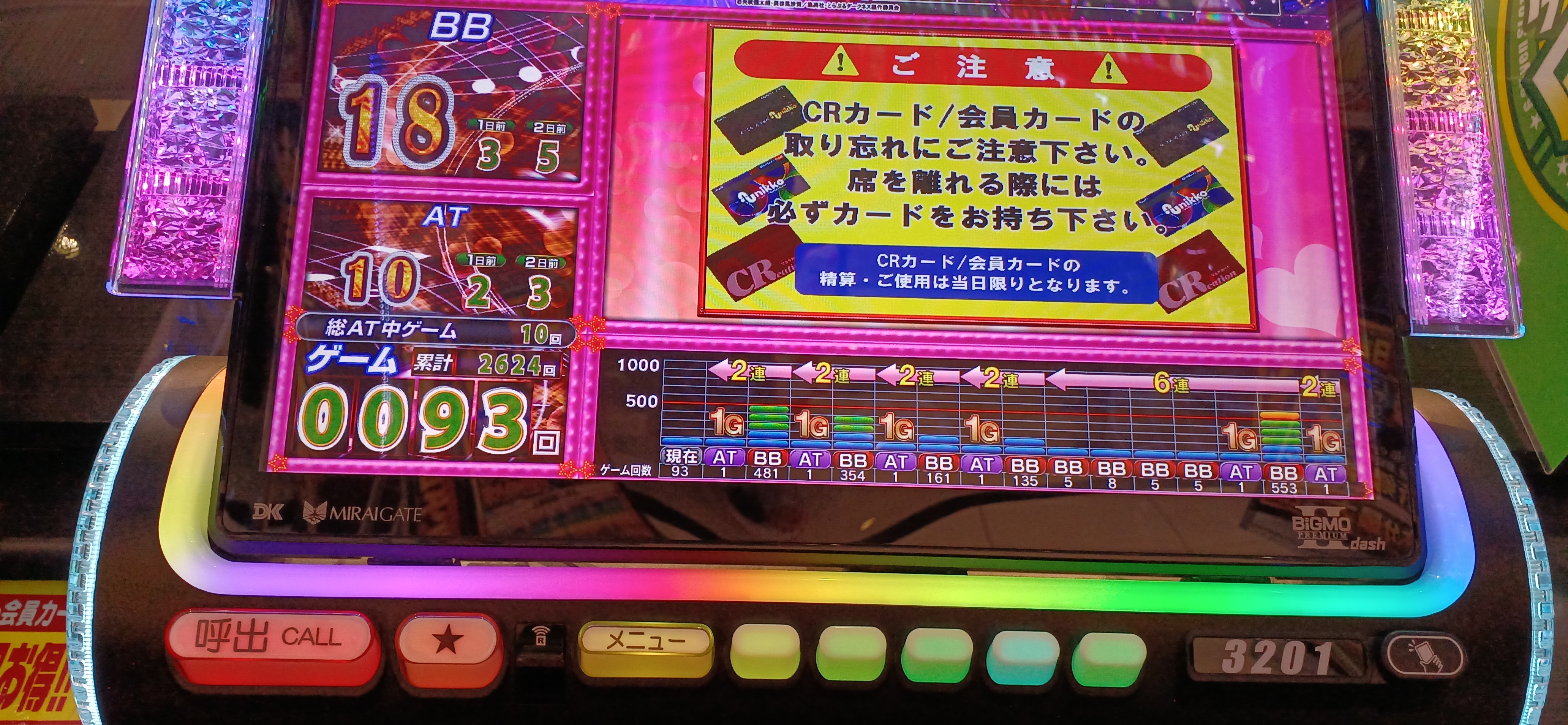 えー…結論から言うと前日…AT当確のボナの途中で閉店したからリセットがかけられたのではないか(仮説)ということです