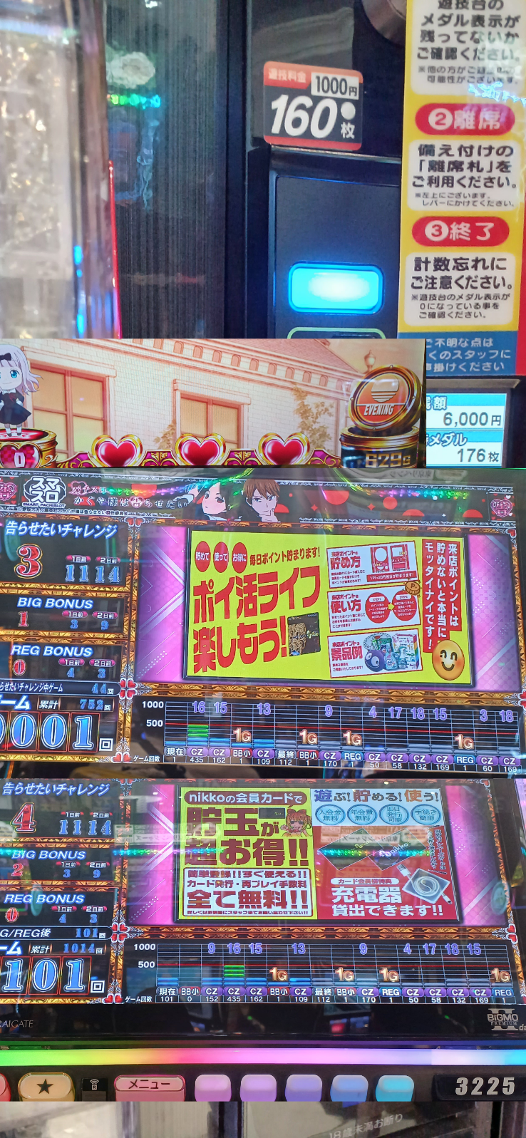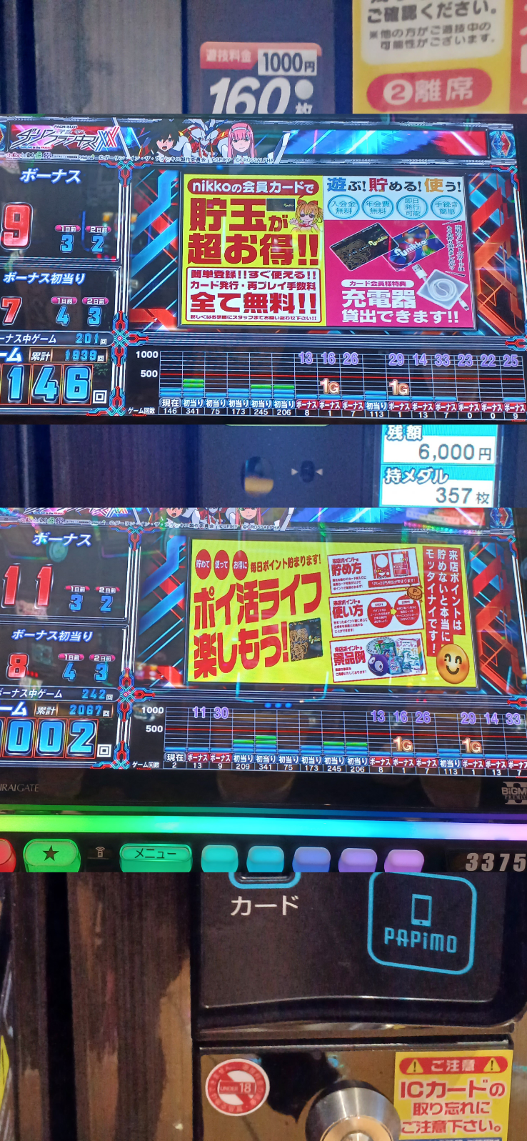 【余談part2】5スロは他にもビンゴネオが1000天井2連単の台があったりしましたが、前日が5000枚以上出てたのでさすがに狙いませんでした