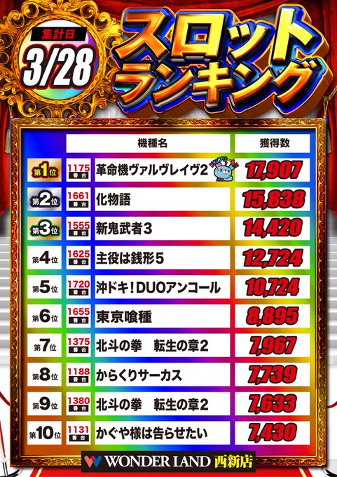 しっかり出してきましたね。店長が変わってから強い煽りor来店があるときは本当に頑張って還元していると思います。元マイホでしたが、今の時代に通いつめたかったと歯がゆい気持ちです。