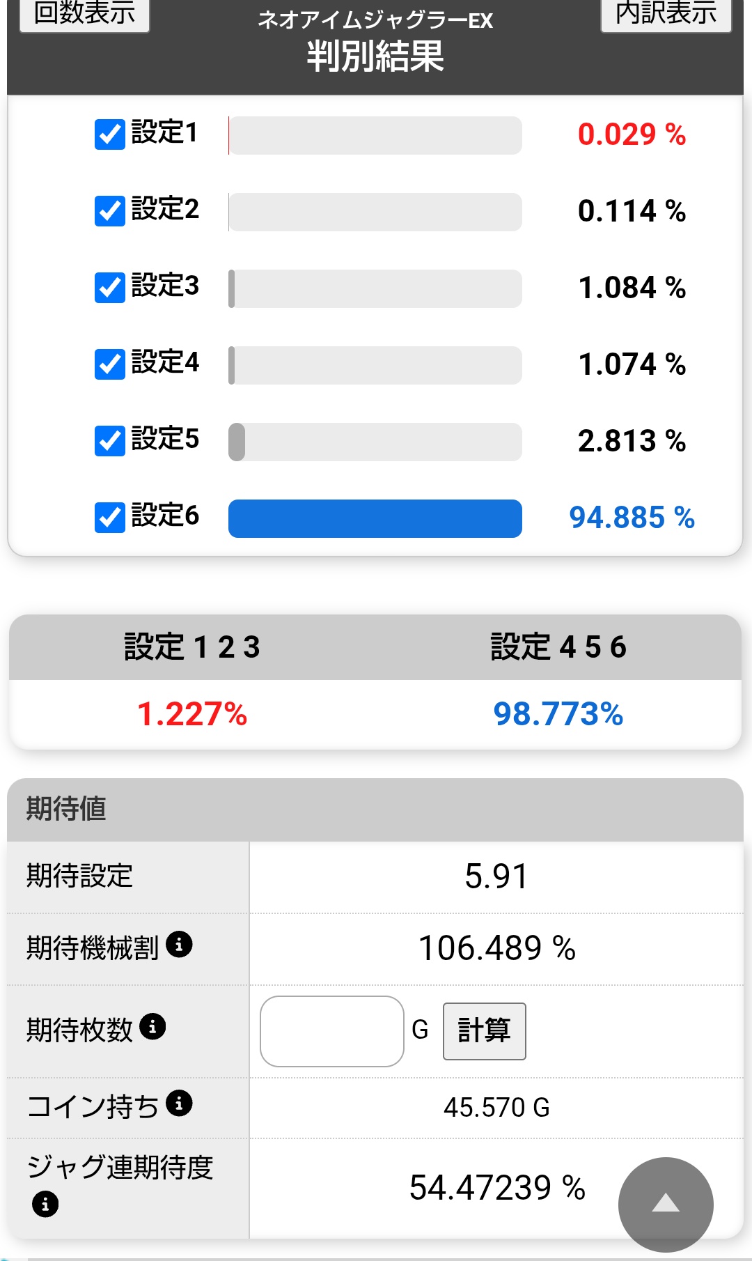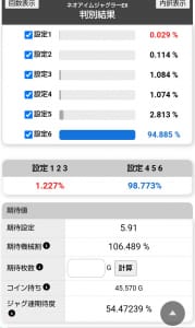 ネオアイム増台+ジャグラー強い店内に告知ありでならばとネオアイム奥角619番台からスタート
