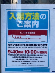 パチンコは正面入り口から並び順。