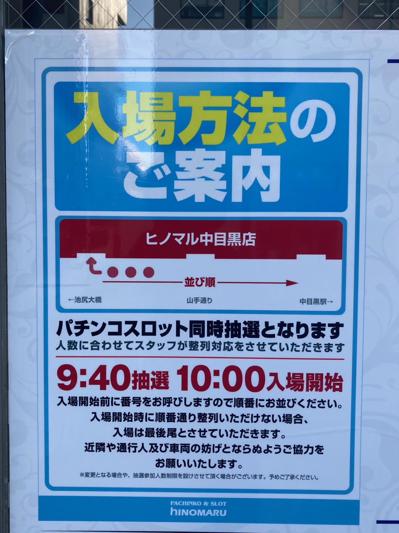 パチンコ、スロットの入場入り口が別。コロナ自粛中は3F自転車置き場で抽選。