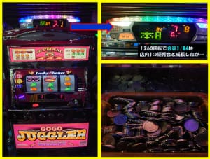 ただ4台設置のマイジャグではなく、同5台のアイムや同2台のミラクルの稼働の方が上だった。