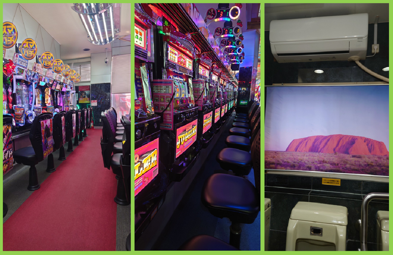 パチンコに腕置きはあるものの、その他は何の設備もなし。