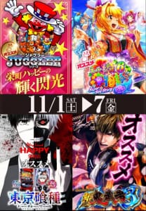 新鬼、喰種が朝からまわってそうだったので店内を見たところ、おすすめ機種がこの2機種でした。