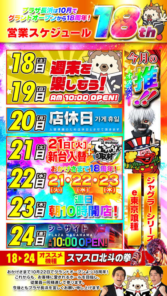 総評:周年ということでかなりの盛り上がりを見せており、特に荒くないスマスロの扱いがよかったように感じました。並びは多かったみたいですが、この状況なら納得も行くと思われます。やはりプラザグループはガセが無くてよいですね。期待通りの結果だったので☆4とさせていただきます(*’▽’)