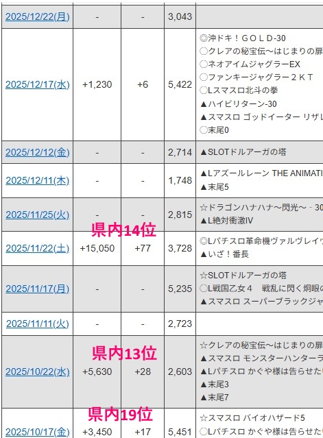 22日に関してはスロット、パチンコともかなり強いです。