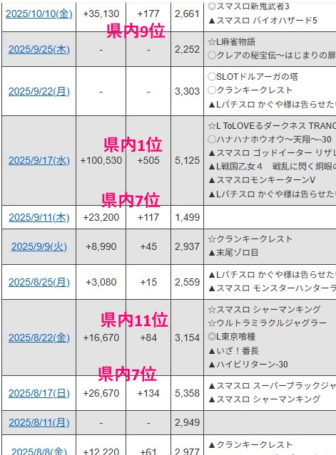 スロットは公約をヒントに戦え、状況によっては後ヅモもできますが、パチンコは前に書いた通り結構癖ある調整するように感じられ、機種単位で入ることを考慮すると、釘わからない人は軍団についていき、たまってるとこを狙うのがいいと思います。