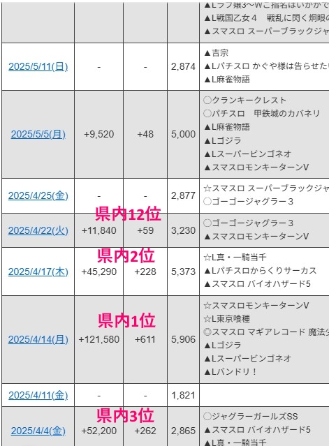 (通常営業日においてはどこのホールも基本回収なのでそれは評価には加えないでください)