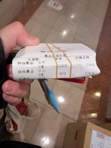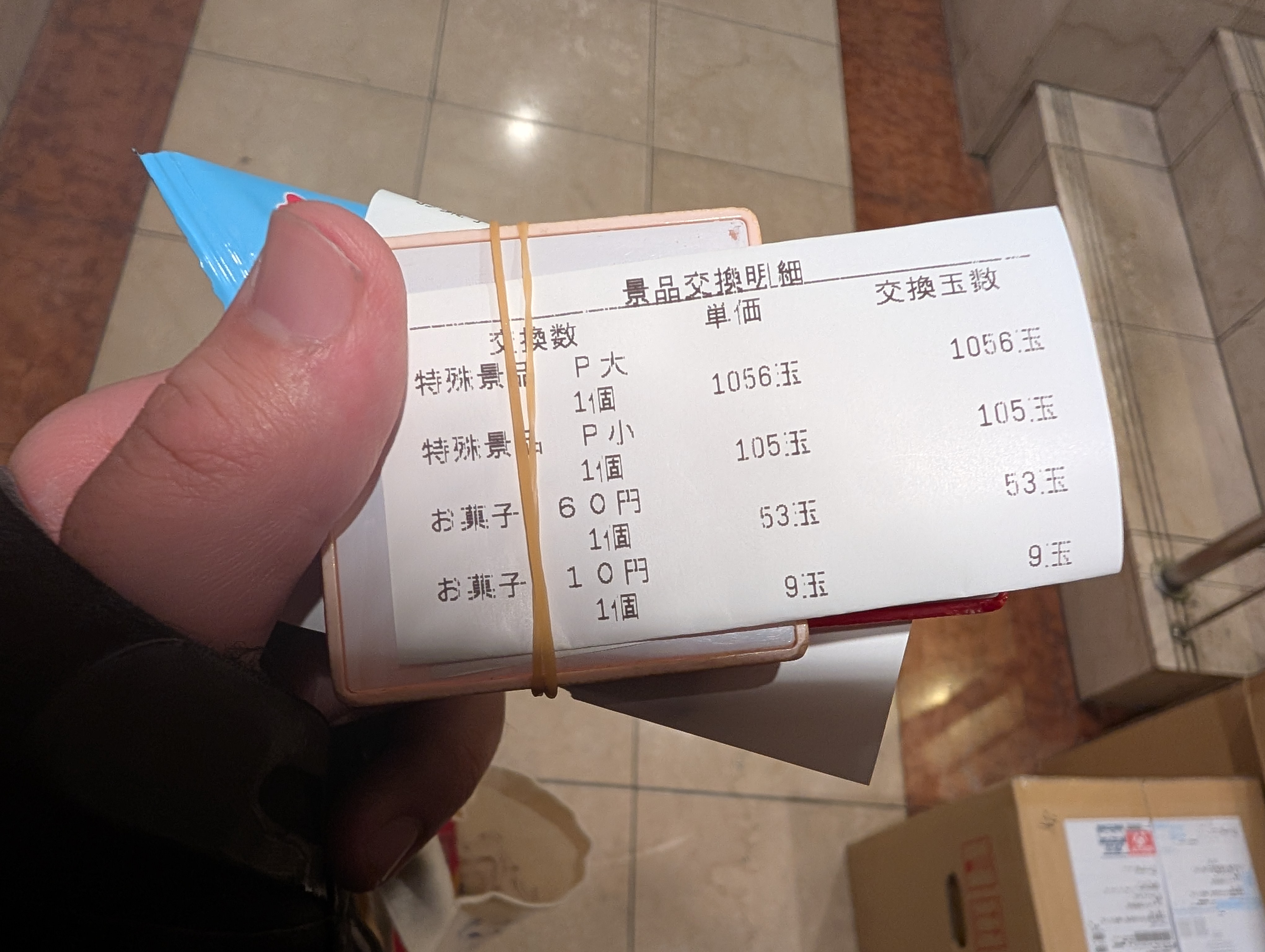 • 320枚で、5.1枚交換合ってますよ。3枚余りはお菓子ですね。計算してみたら、320枚÷5.1枚=6200円だったので。