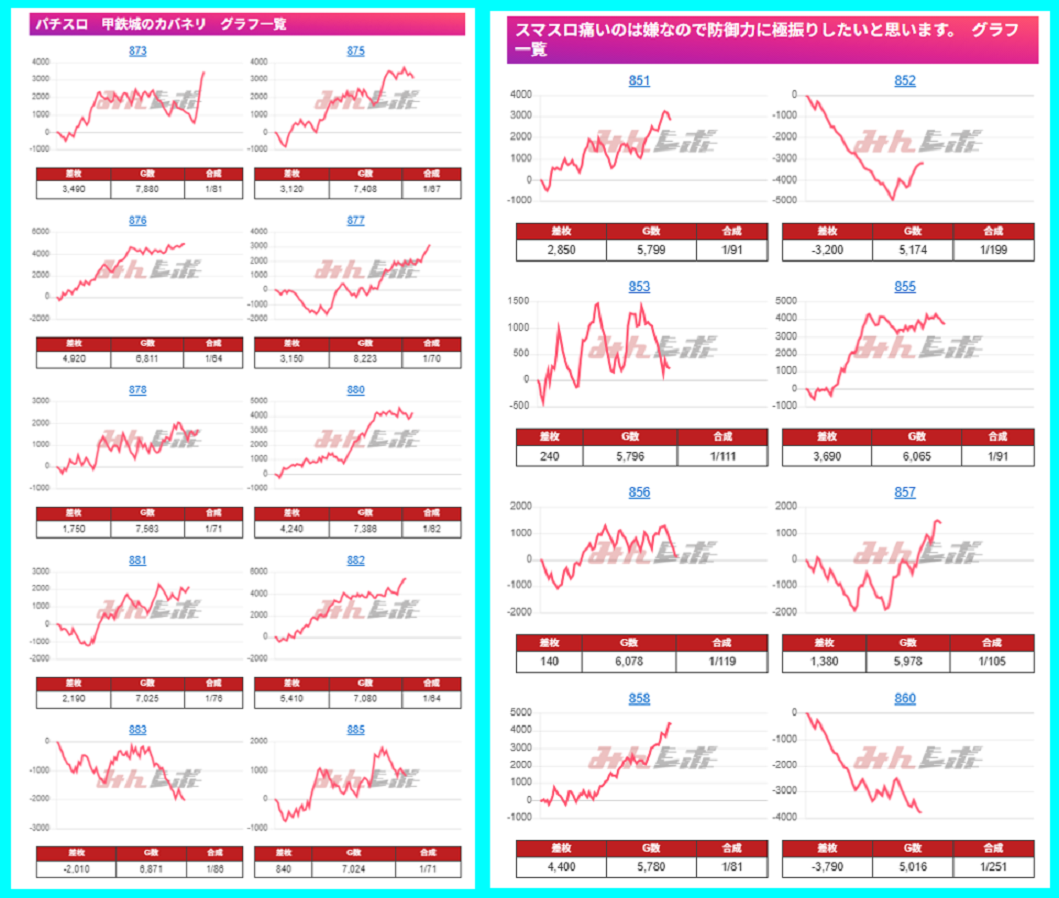 ただ個人的には画像④のように、今でもカバネリ・L防振りといったピークを過ぎた台にも全台に夢を見させてくれるのは嬉しいところ(今年9月14日のデータ)
