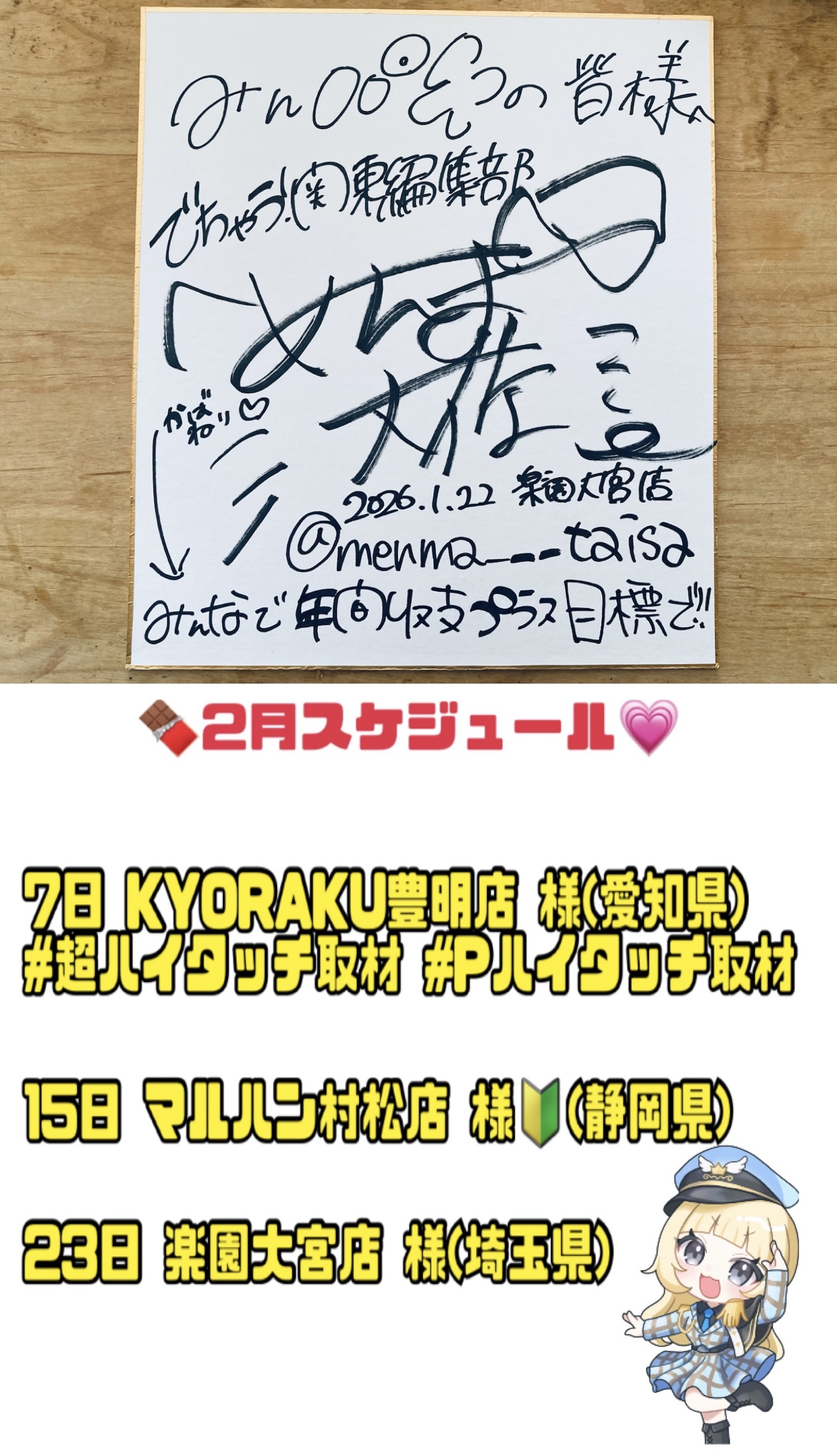 クロロ店長 取材スケジュール
