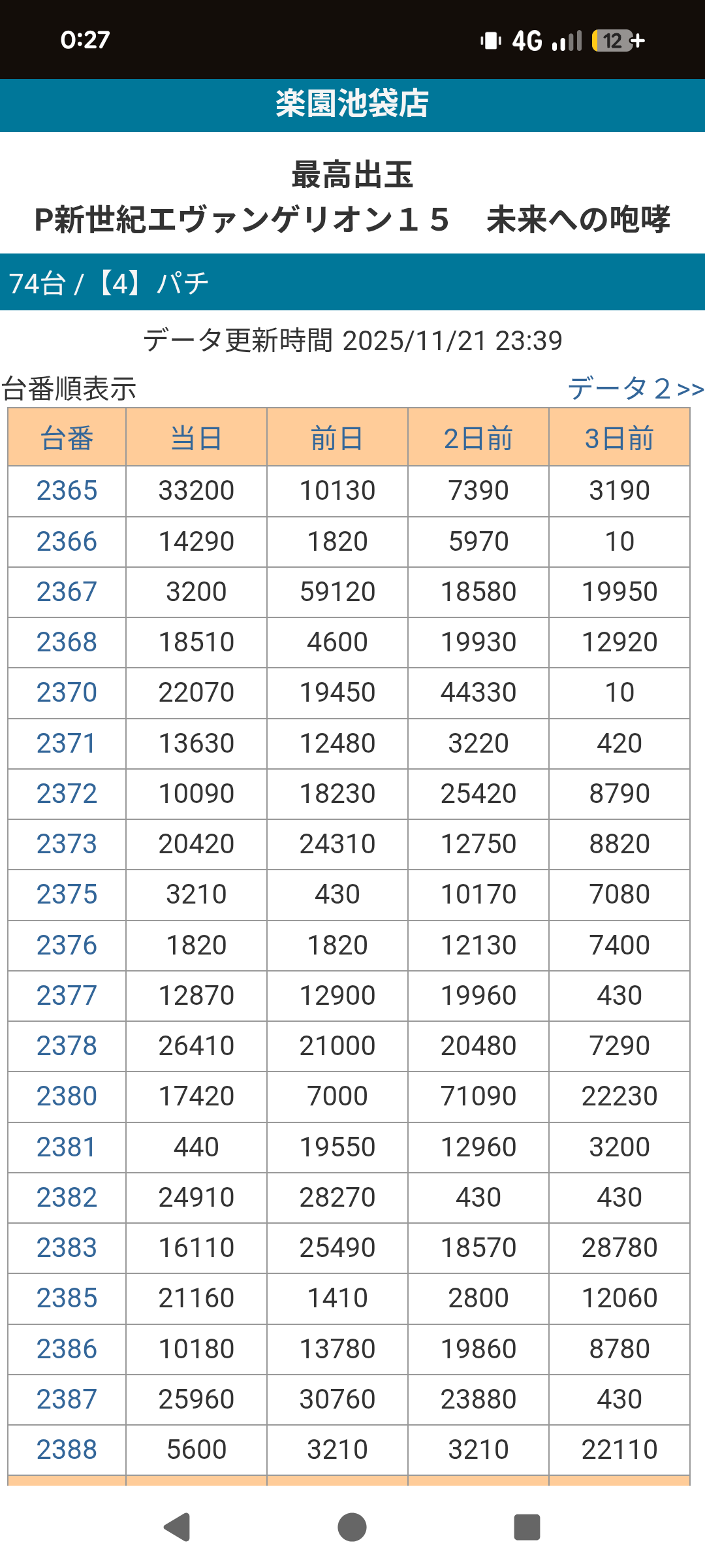 • 今年から常連客からのお話で、出す店舗と回収する店舗があると昨日も常連客が話していて、渋谷店は朝からスロット・パチンコ共に出すそうです。この週末もお話し通り楽園の中では出す店舗として楽しめるお店です。1日全く出さないお店になっていないのが一番だそうです。楽園でも特に酷い店舗は池袋店と聞き、楽園でも一番出さない店舗と聞きました。午後から閉店まで、特に1円パチンコエリアは悲惨な状況だそうです。行くのであれば渋谷店をお勧めするそうです。
