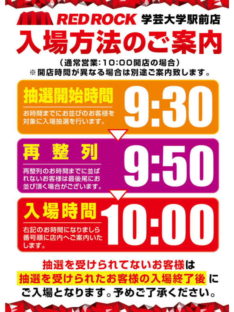 | 注意点 | 09:30~ 抽選開始 |
