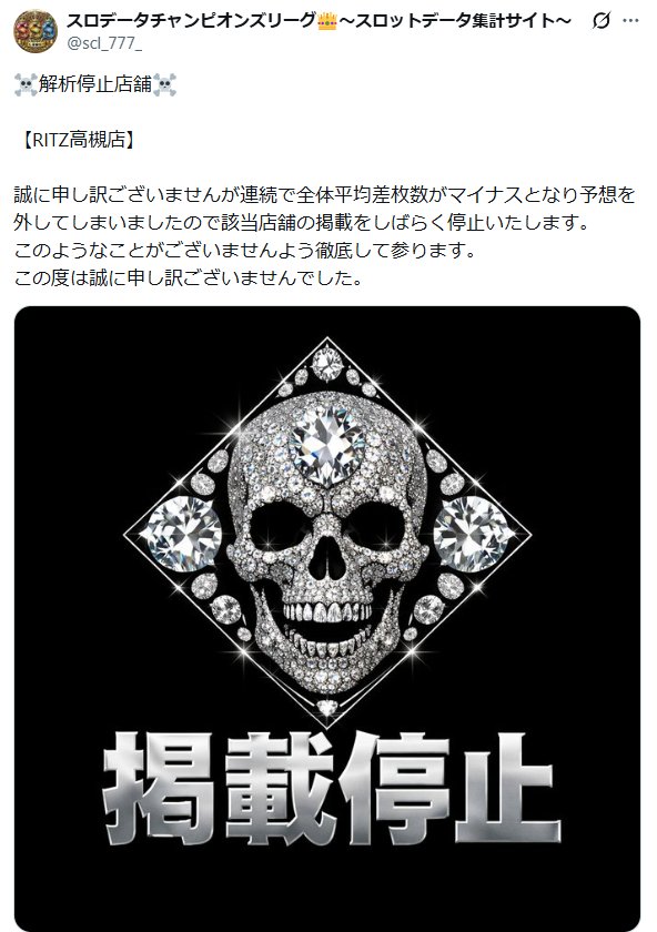キコーナが反対側に出来て、貯玉再プレイが2500発にした事によってRITZも再プレイ制限をかける動きがあるみたいですが、今までは無制限に使ってたお客さんに対して告知すれば交換RUSHや客離れを恐れて意図的に貯玉や貯メダルを削るような動き方をしてるんかな?と思うような特定の通い慣れた方には闇の力で出さないようにしてるようです。 リッツのXも開設し何やらまたイベントを増やすようですが増やすなら増やすでしっかりと公約と強、弱があってもしっかりと設定や出玉面も細工せんと営業して欲しいもんです。 後、Xでお客さんに痛いと言われたからどこぞの猫の天使です。みたいな画像消した方がいいですよ