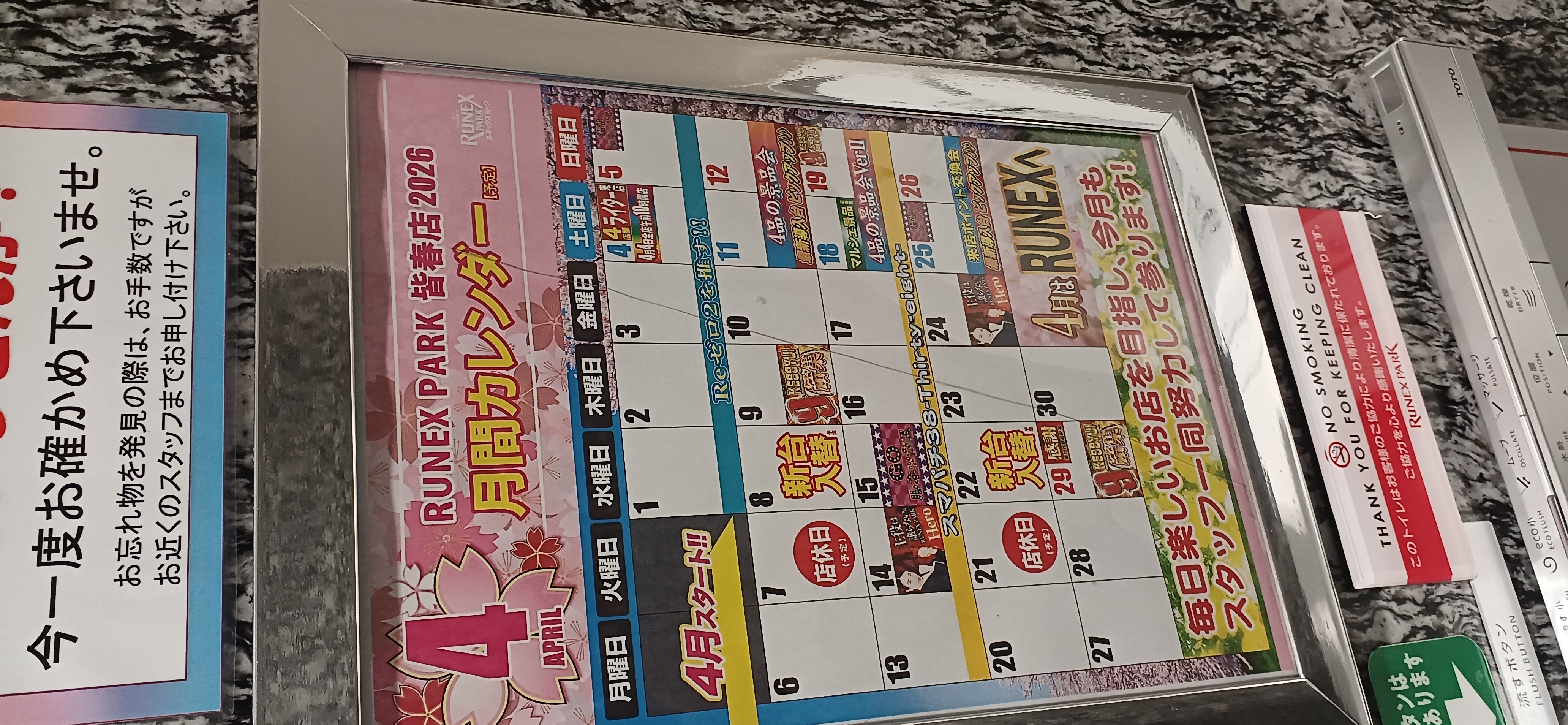 装飾は店内の休憩所側出入口付近立て看板にGOD導入告知の予告がされており