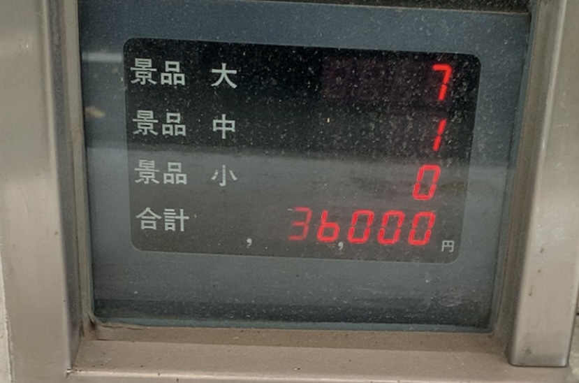 箱を積むタイプの4パチしか無いお店で、11,000玉以上取って¥36,000という非等価の割には、そこまで回転しません。