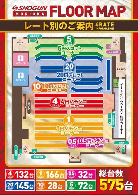 台数パチンコ330台/スロット245台