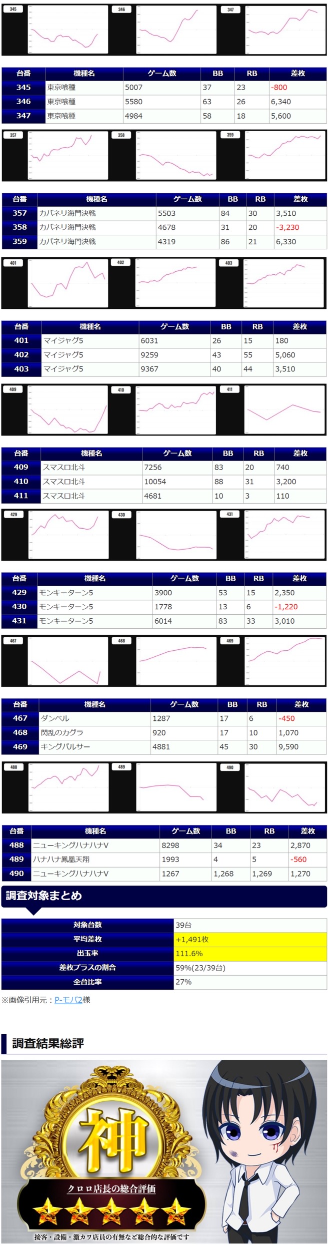 (通常営業日においてはどこのホールも基本回収なのでそれは評価には加えないでください)
