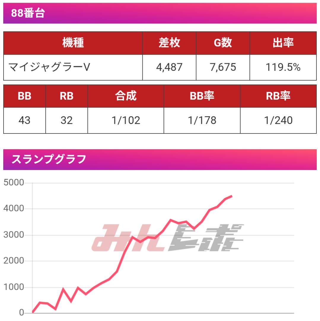 店舗画像、高設定と言えそうなマイジャグのデータ貼っておきます。