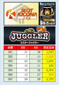 ジャグラーは明らかにレギュラー回数を増やして全体のボナ回数を増やしている。