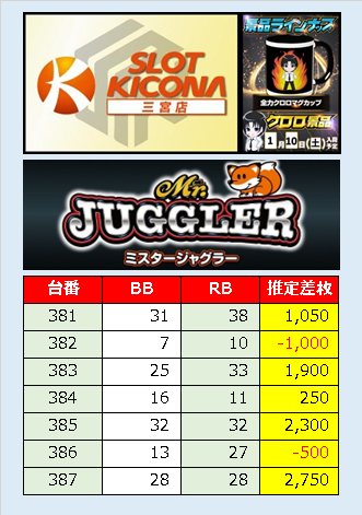 台稼働は間違いなく三宮周辺では1、2番ですね。その分データ公開してると設定の入れ具合が分かりやすいので是非検討してほしいです。