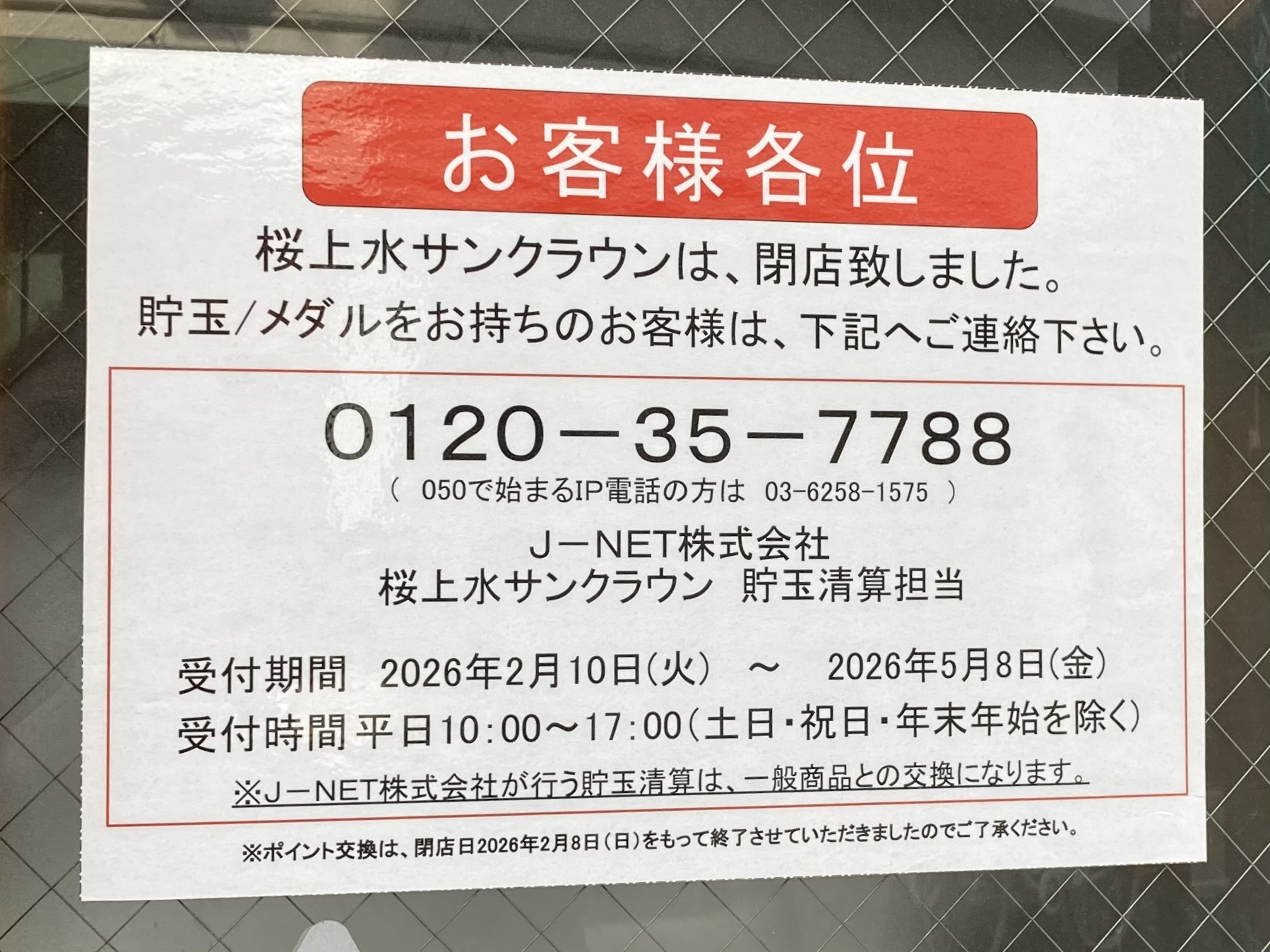 2026年1月25日 閉店