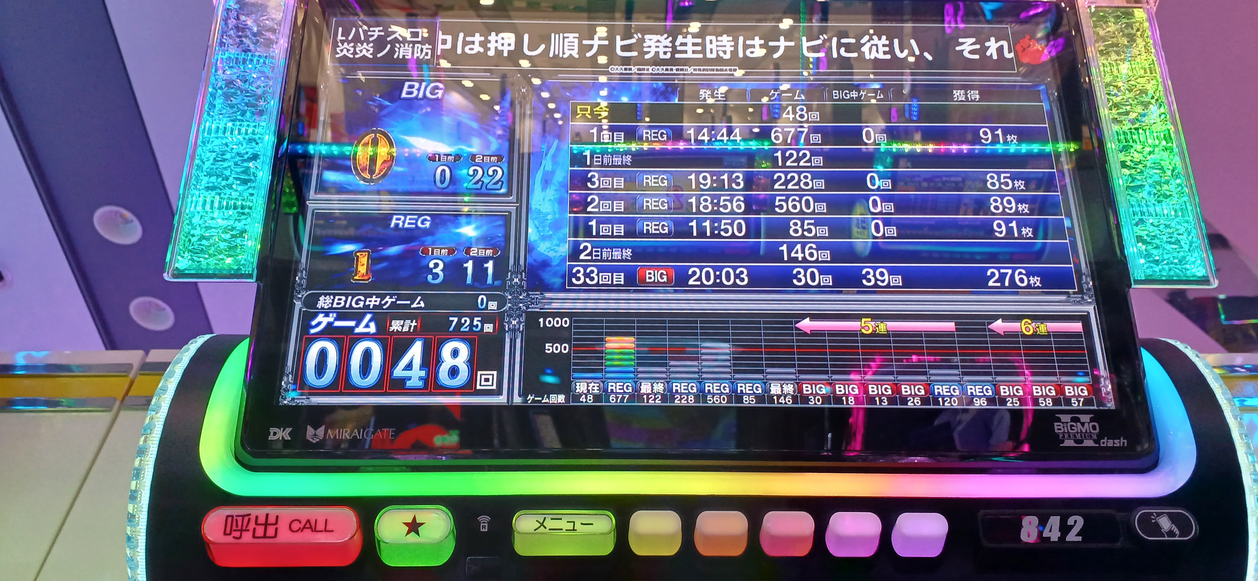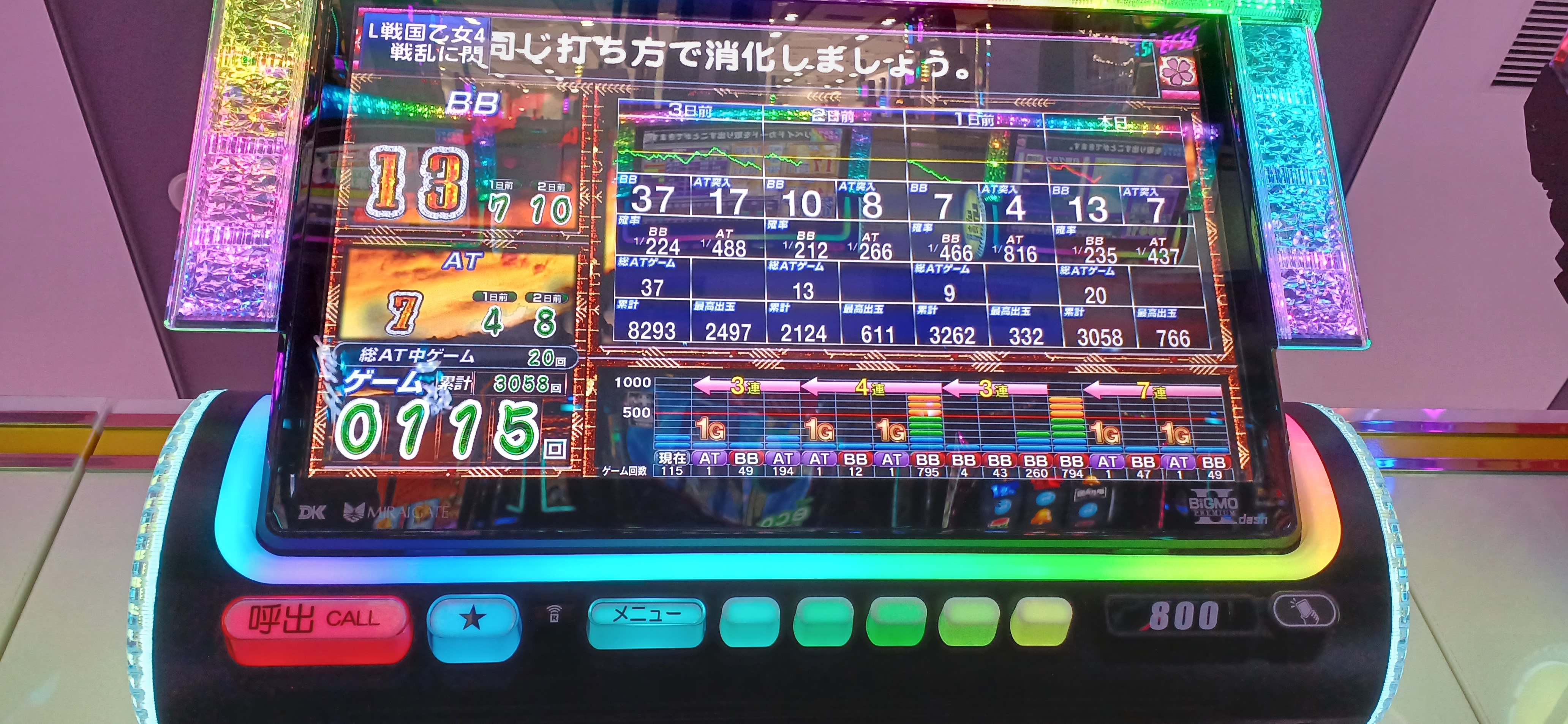 20スロ、ジャグラーは5割以上の稼働率で、その他スマスロやメダル機もそこそこ稼働しており、新台はSEEDがほぼ空席で稼働率低め、実力主義も稼働率は低く、緑ドンもやや稼働が低くなっているがそれなりに動いている