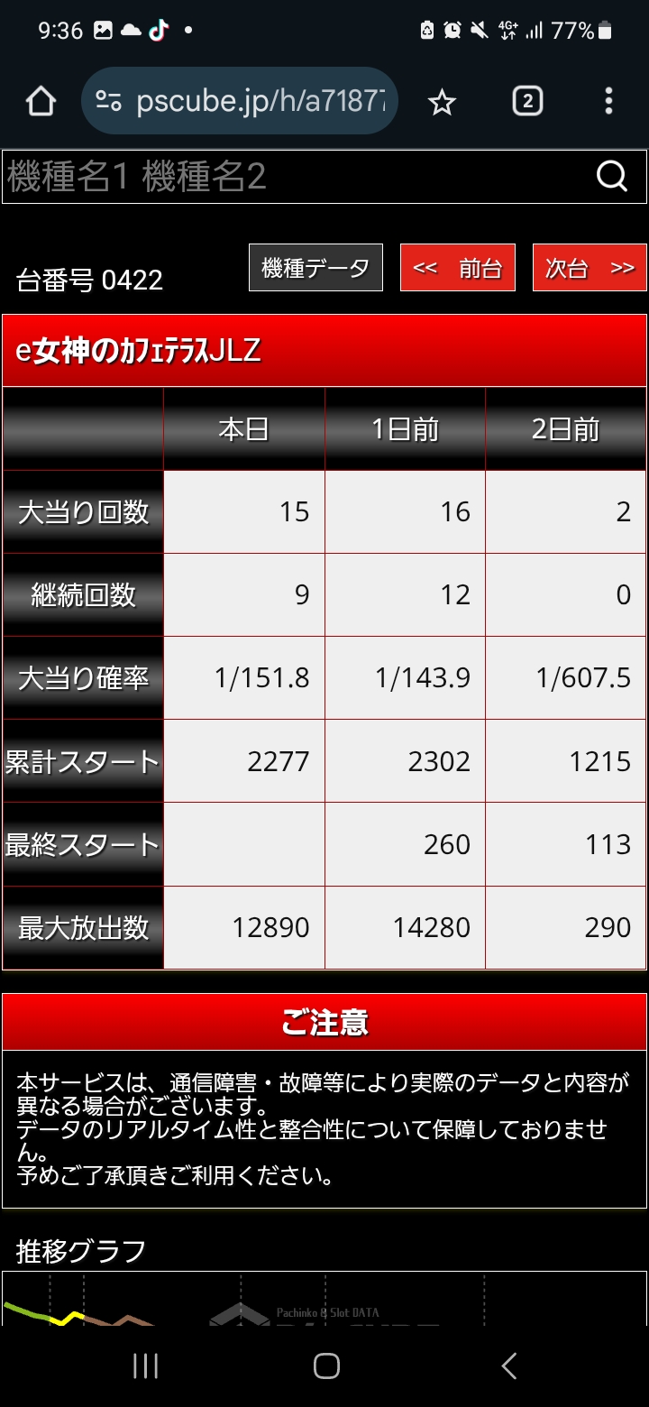 その他スマスロは東京喰種など盛り上がっており、出玉記録はモンキーが4000枚オーバーやダリフラが8000枚オーバーなど景気の良い光景が見れた