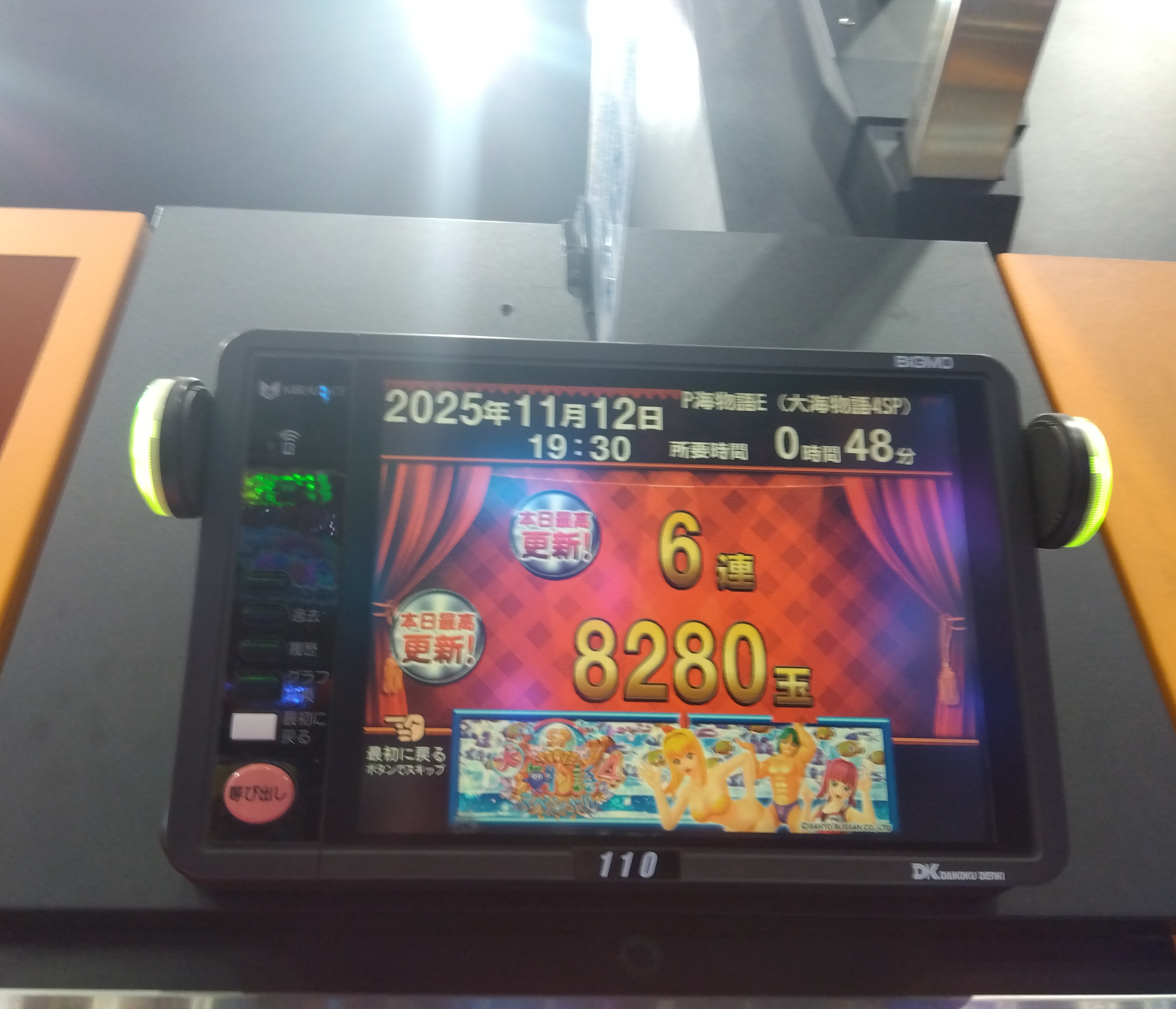 大海4SPも含めた過去お宝機種があるのはワクワクがとまらない!最高なバリエーションである。完全な願望で恐縮ですが、仮面ライダー轟音やキン肉マン3火事場ゴールドもあると、お宝機種揃え日本一狙えます!(それ位に揃いに揃ってます!(笑))
