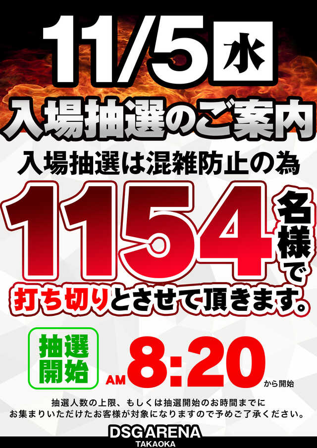 かつて初回で派手に出したきり信頼度がガタ落ちのこのイベント、さすがにガチ専業の軍団は見向きもせず。結局、DSGアリーナ高岡店の「復活」を期待したこの日は、看板倒れのまま静かに幕を閉じた。